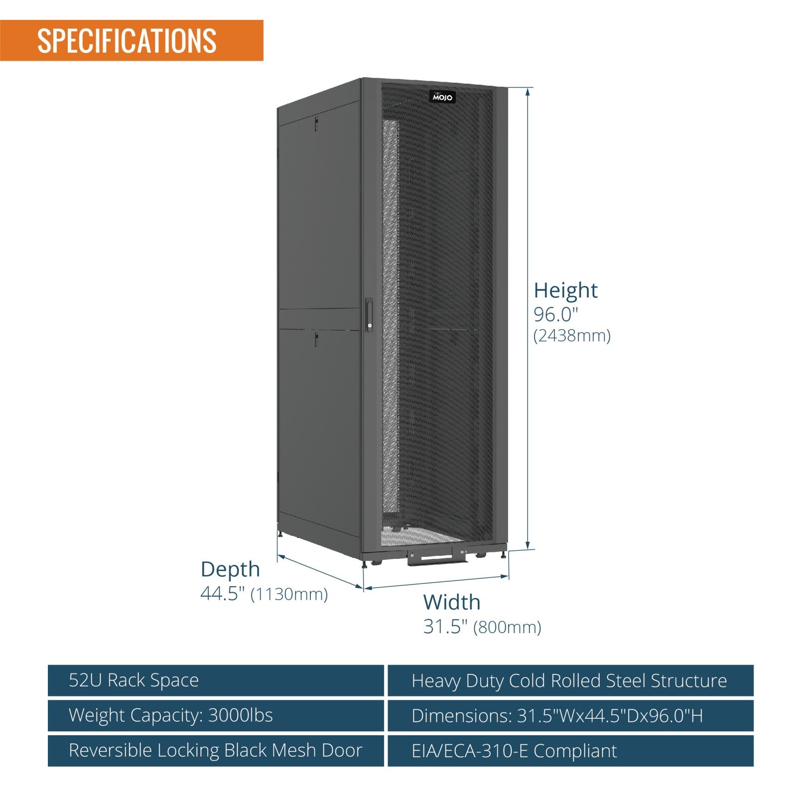 Tecmojo 52U Assembled 44.5inch Depth Black Server Cabinet with Casters-3000lbs Weight Capacity