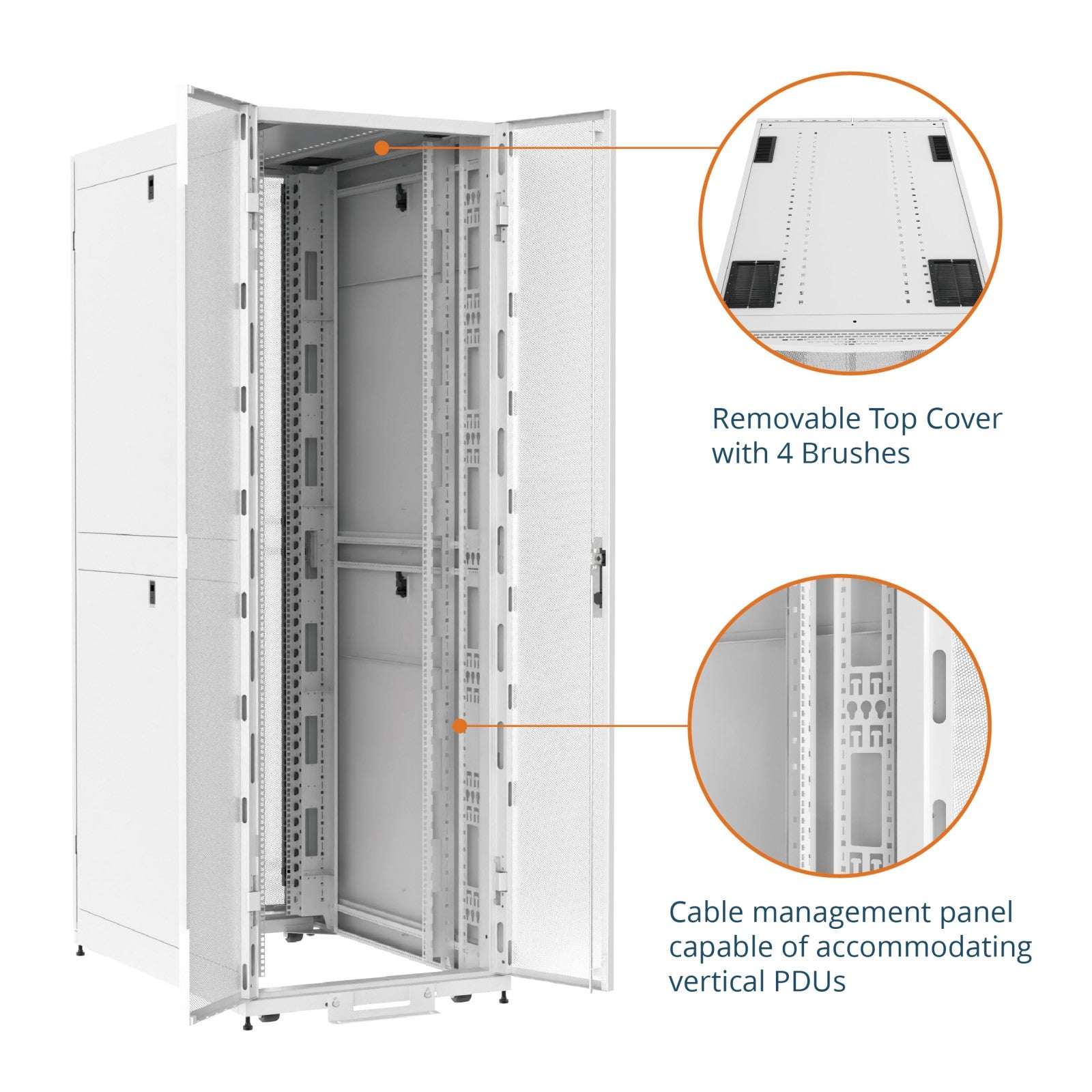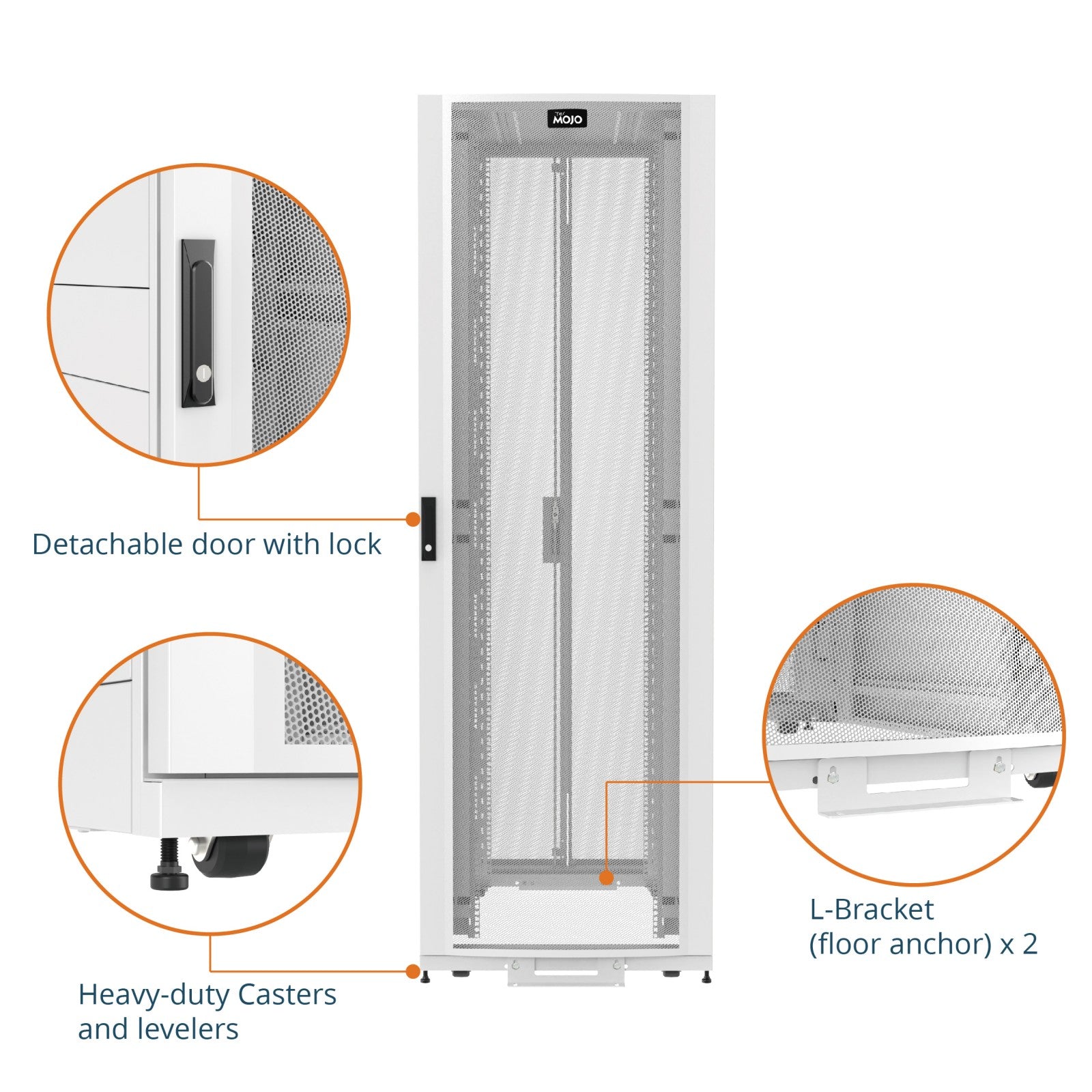 Tecmojo 52U Assembled 44.5inch Depth White Server Cabinet with Casters-3000lbs Weight Capacity