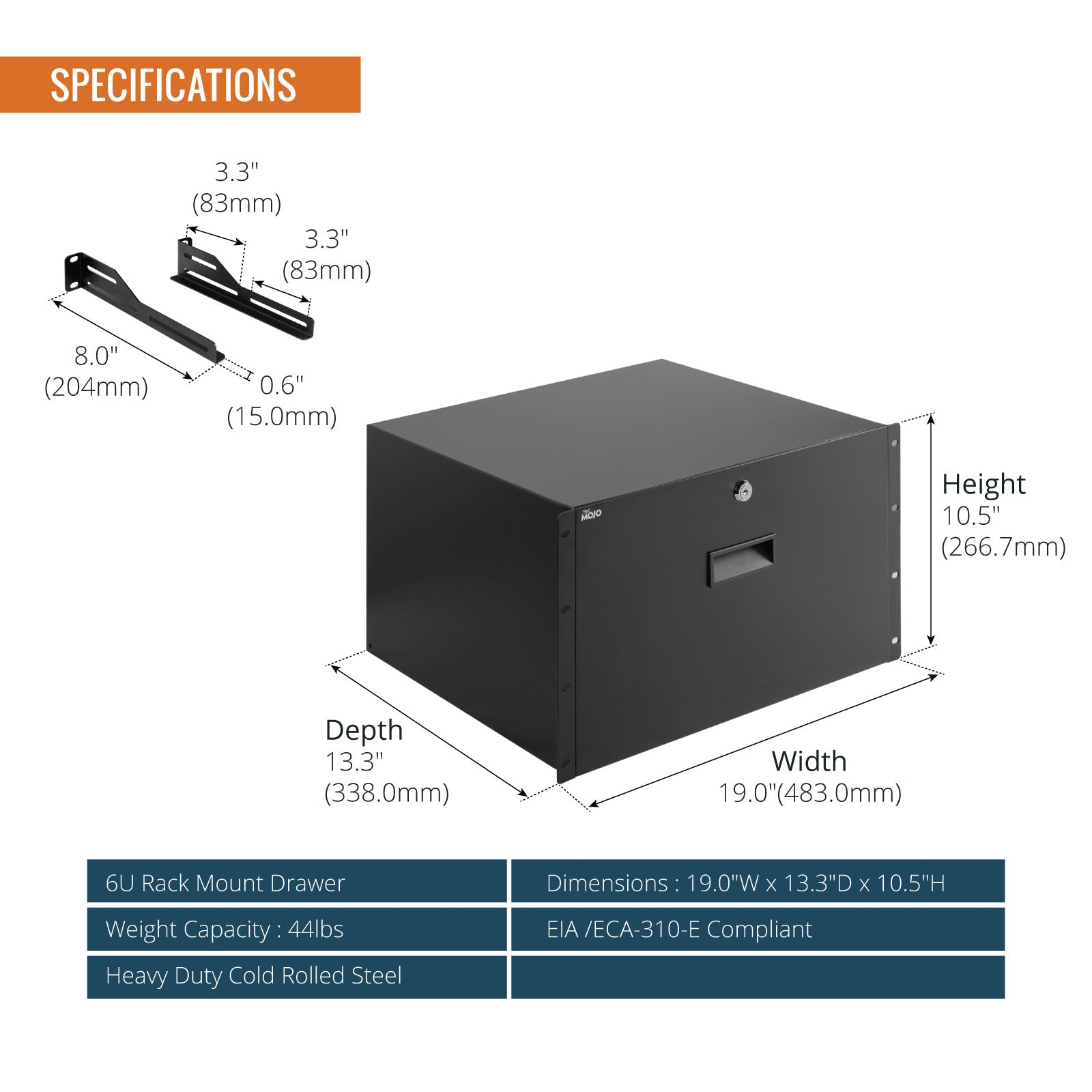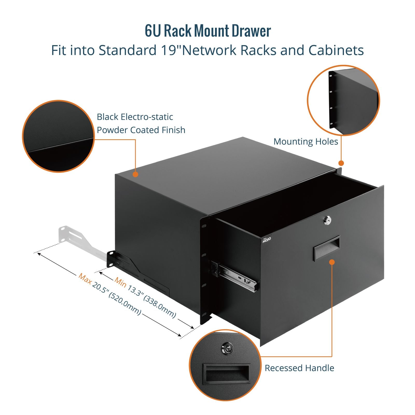 Tecmojo 6U Rack Drawer with Cable Management Holes for 19 inch Equipment-44lbs Weight Capacity