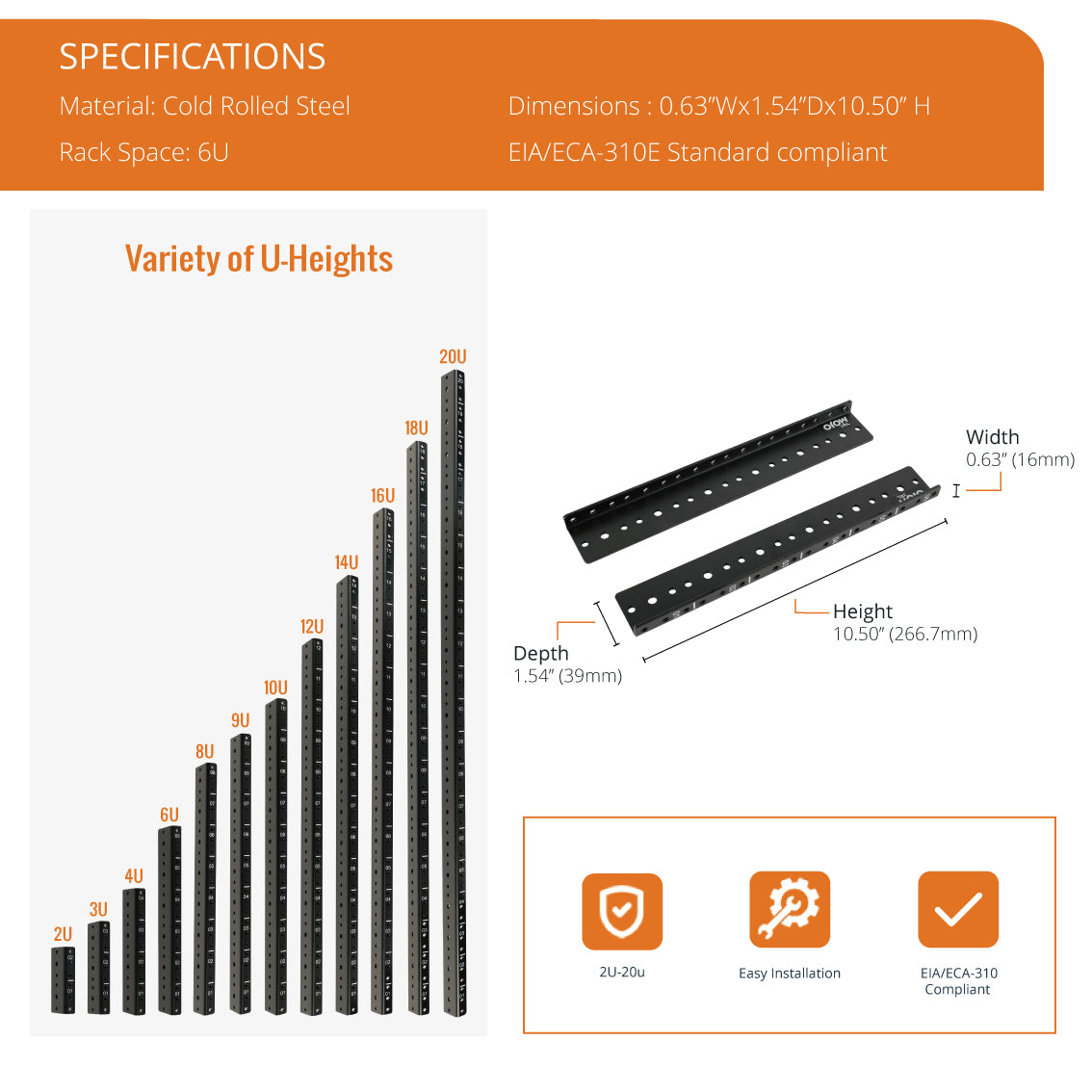 Easy Identification: Screen-printed rack unit dimensions on the frame make it easy for users to identify and install.