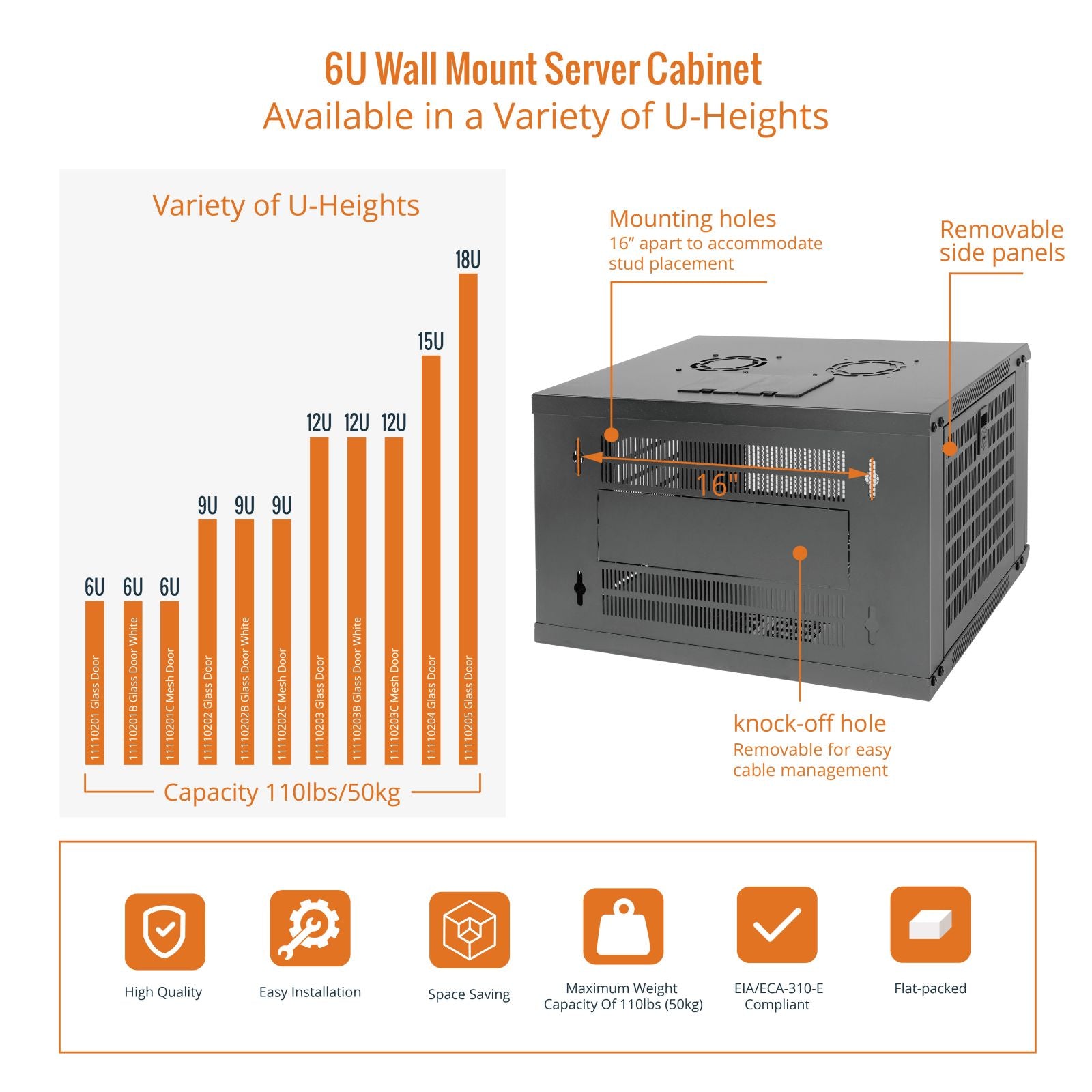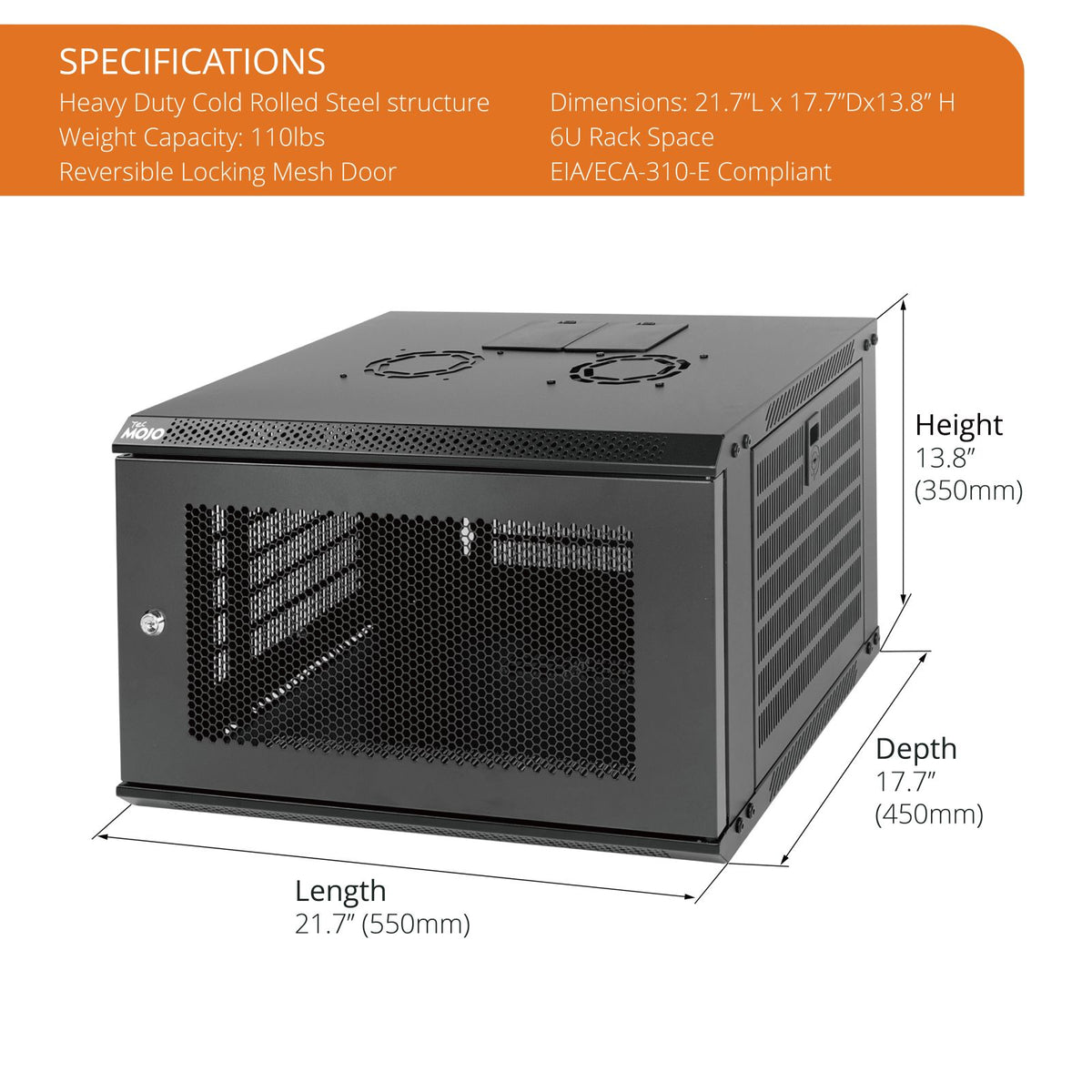 Tecmojo 6U 450mm Depth Black Mesh Door Standard Wall Mount Cabinet(Flat Pack)
