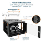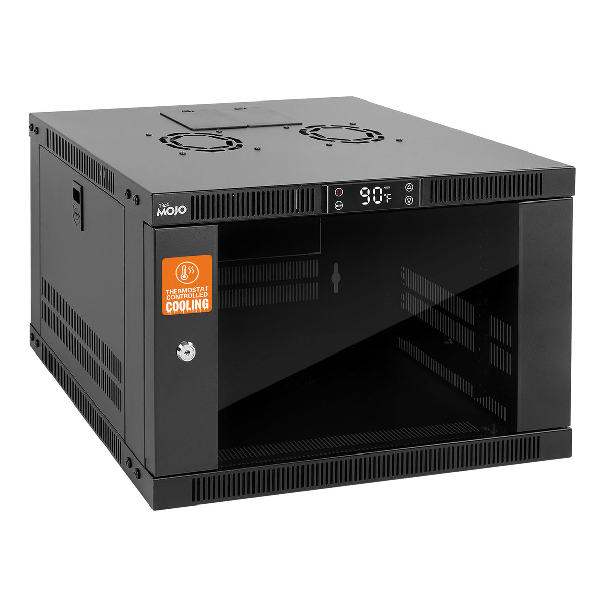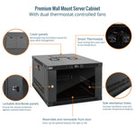 Tecmojo 6U Wall Mount Rack with Thermostat, 17.7inch Depth Enclosed Server Cabinet with 2 Cooling Fans,Lockable Door & Hardware,6U Rack for 19inch Equipments,Glass Door