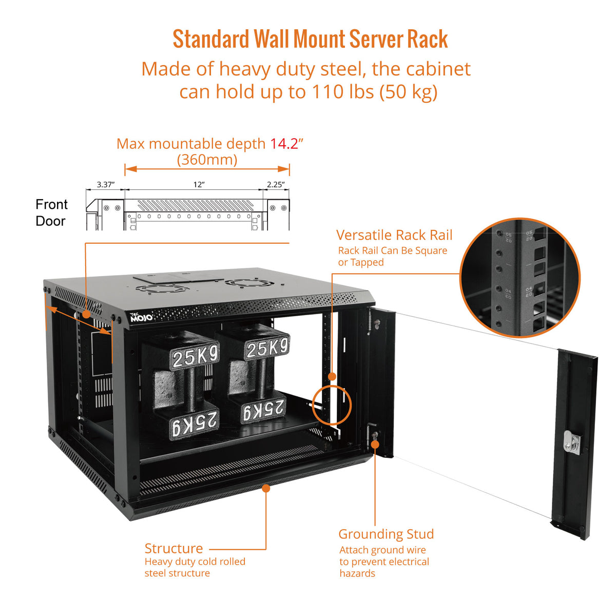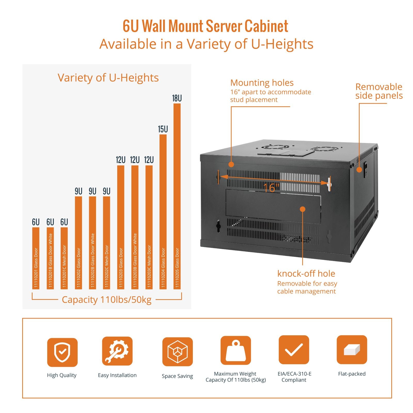 Tecmojo 6U 450mm Depth Black Glass Door Standard Wall Mount Cabinet(Flat Pack)