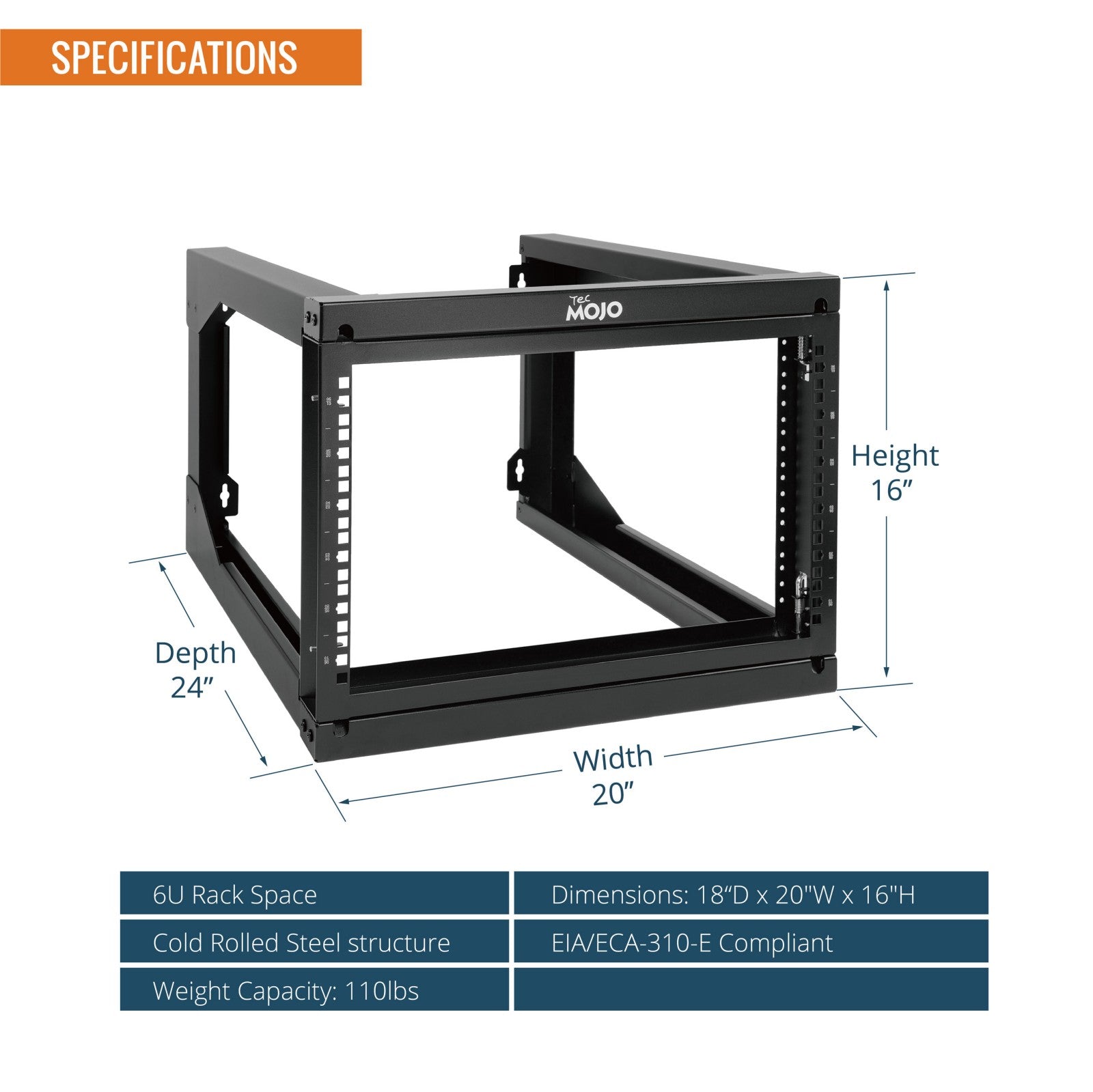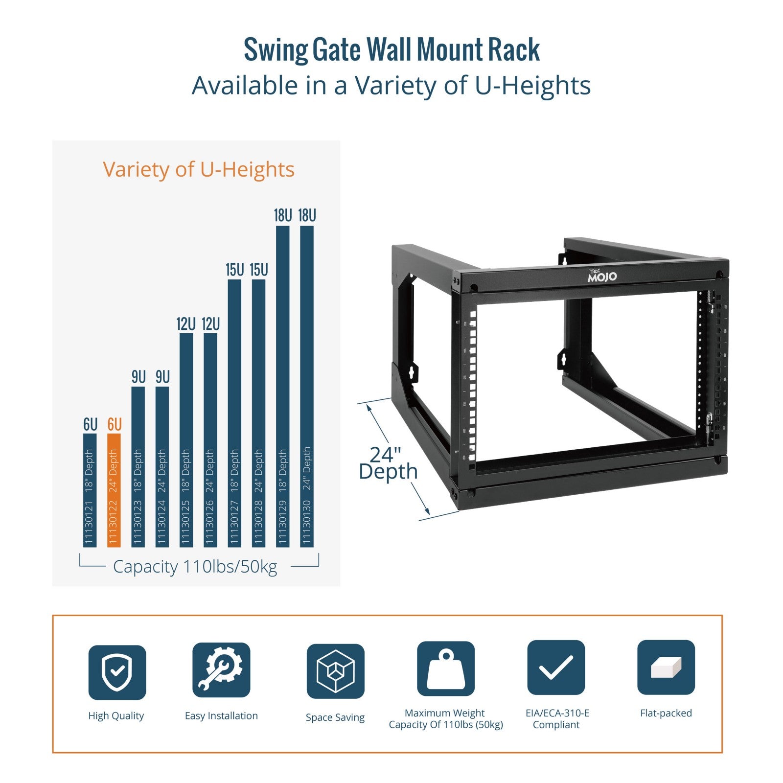 Tecmojo 6U 24in Depth Swing Gate Wall Rack for 19" Server and Network Device
