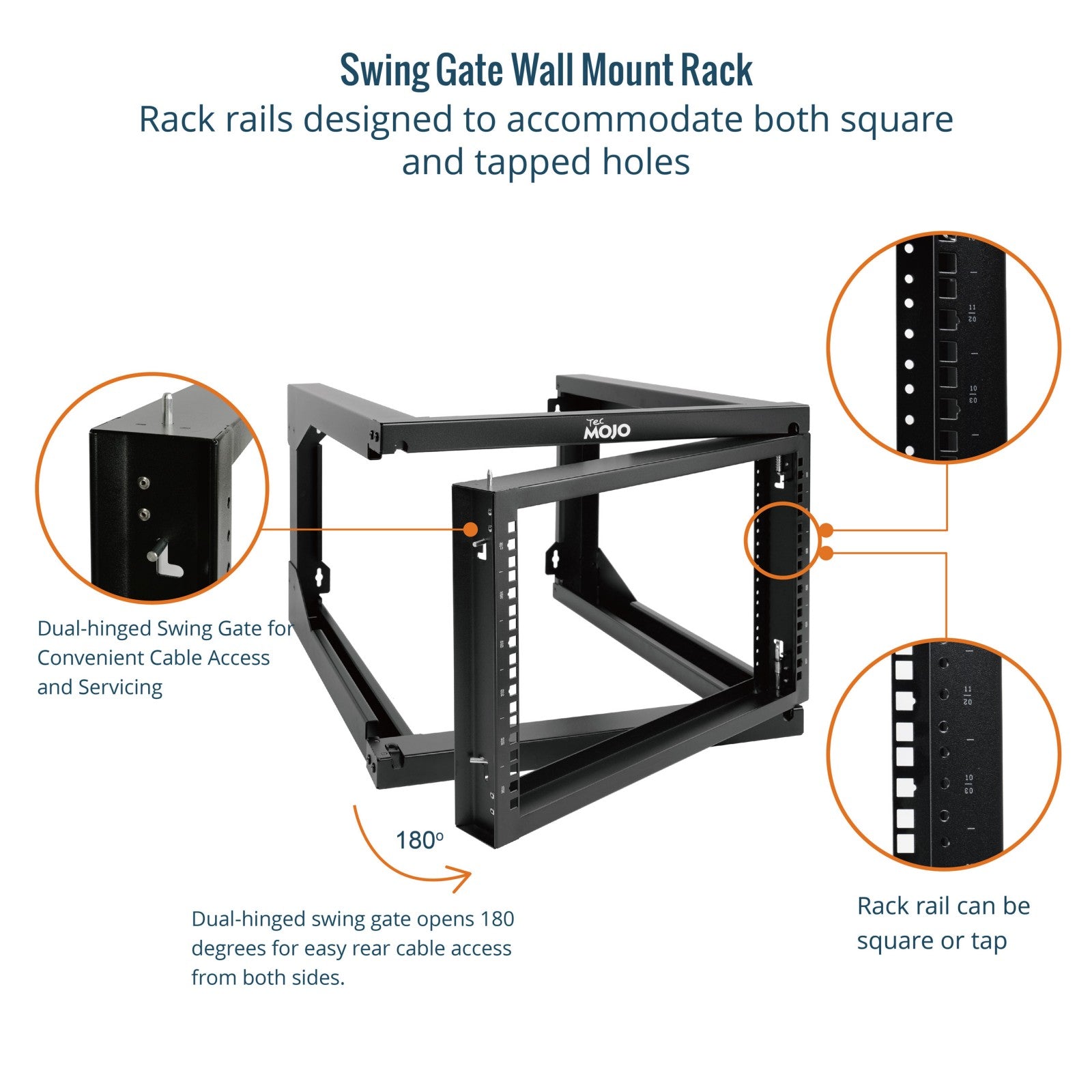 • Convenient Cable Entry: Dual-hinged Swing Gate opens 180 degrees for easy rear cable access from both sides.