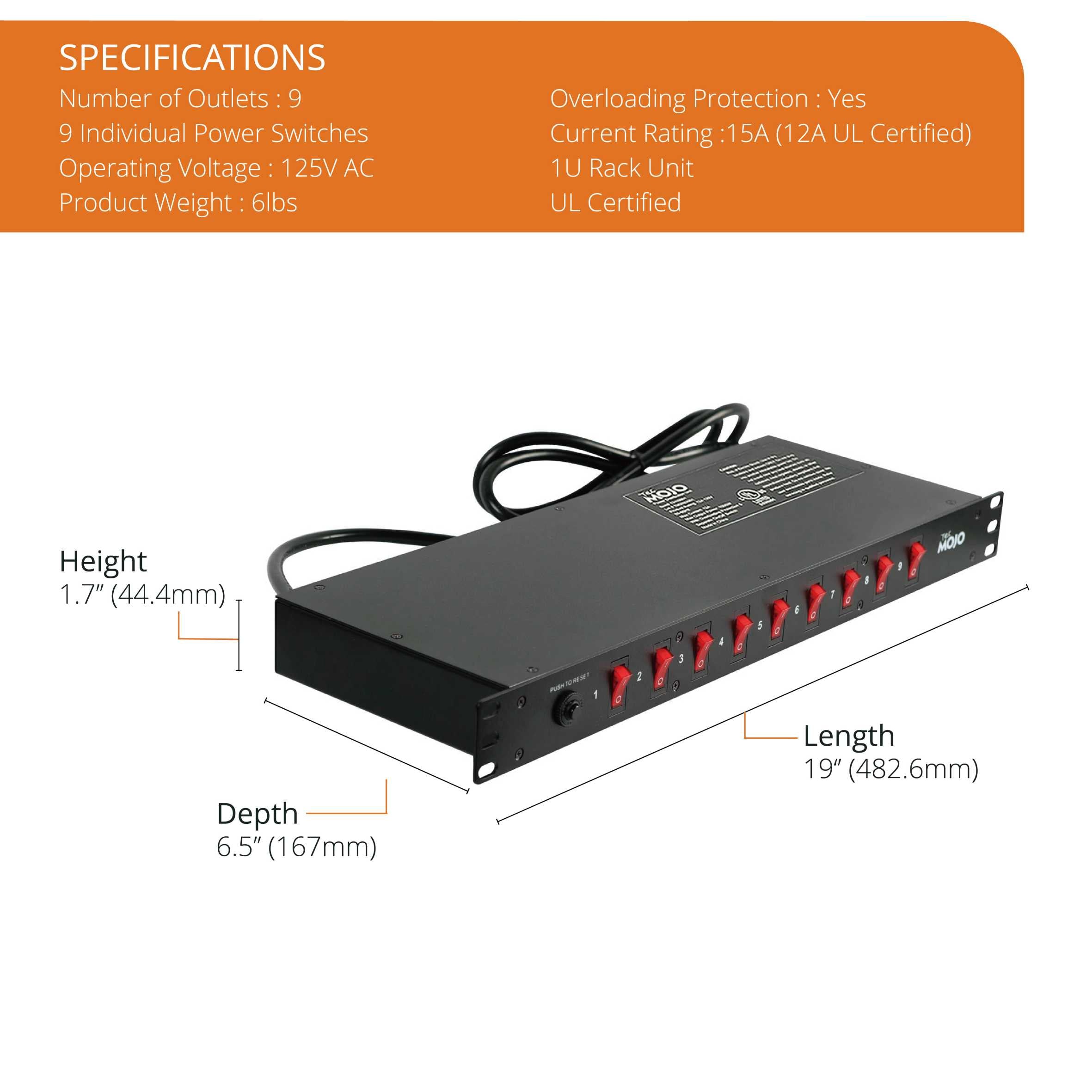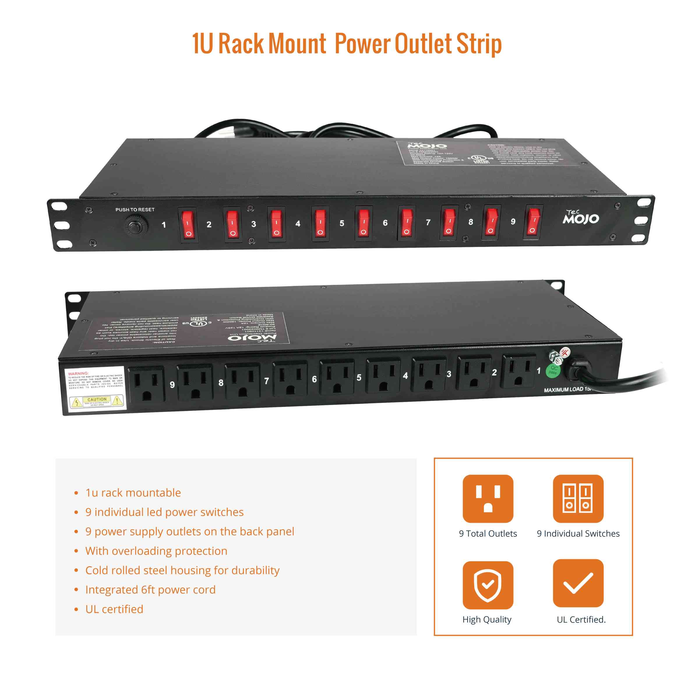 Tecmojo 9 Outlet Overloading Protection Circuit Breaker PDU Power Strip with Individual Switch