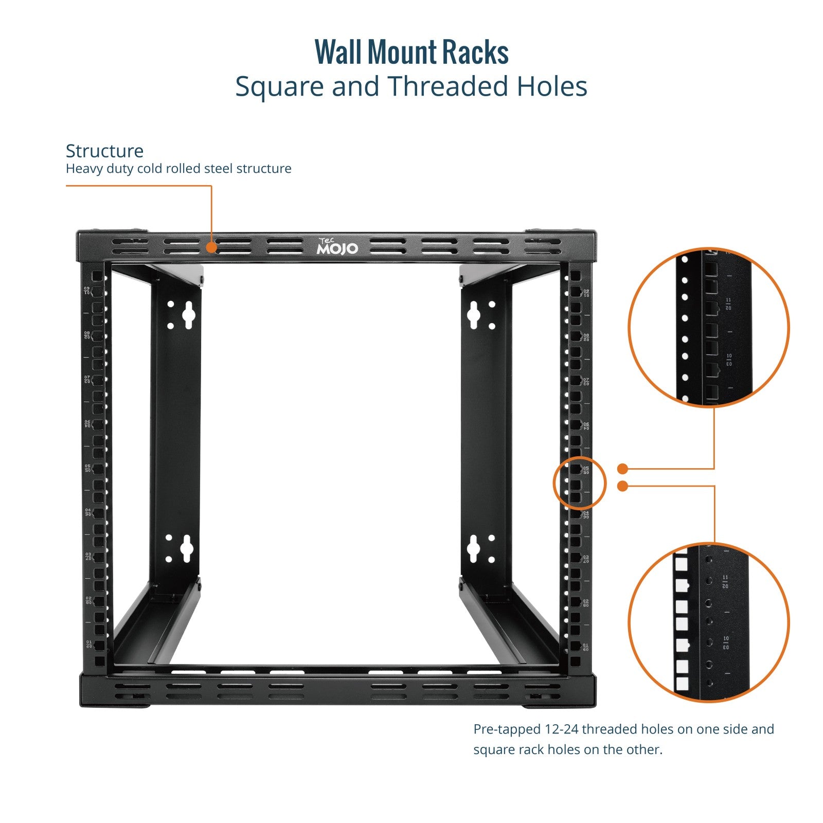 Widely Applicable: Open Frame Rack with both 12-24 threaded holes and square holes; Available in 6U/9U/12U/15U and 15.8-inch/24.8-inch depth.