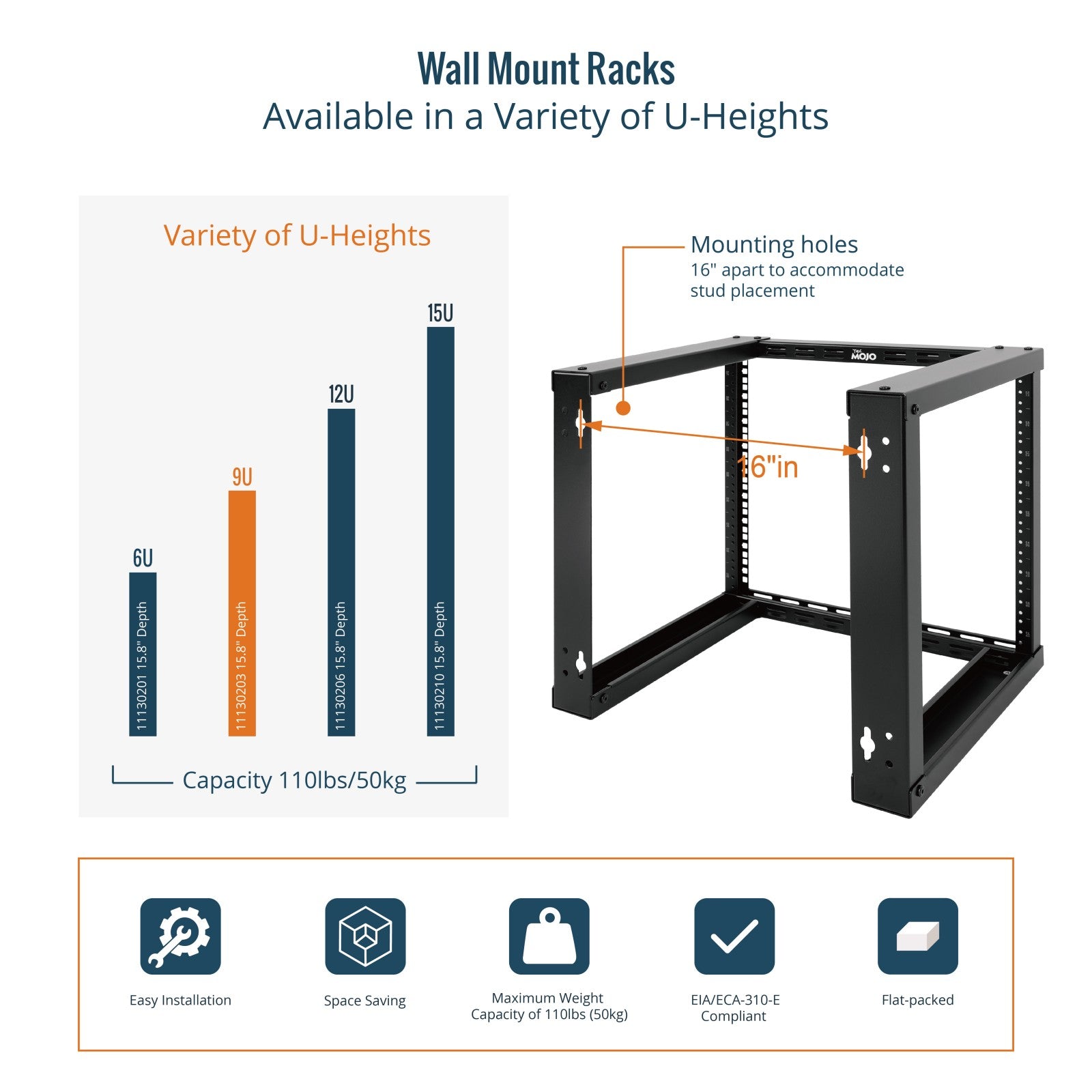Easy Installation: EIA/ECA-310-E complaint; 9U Wall Mount Rack provides corresponding accessories, instructions and video explanation for reference.