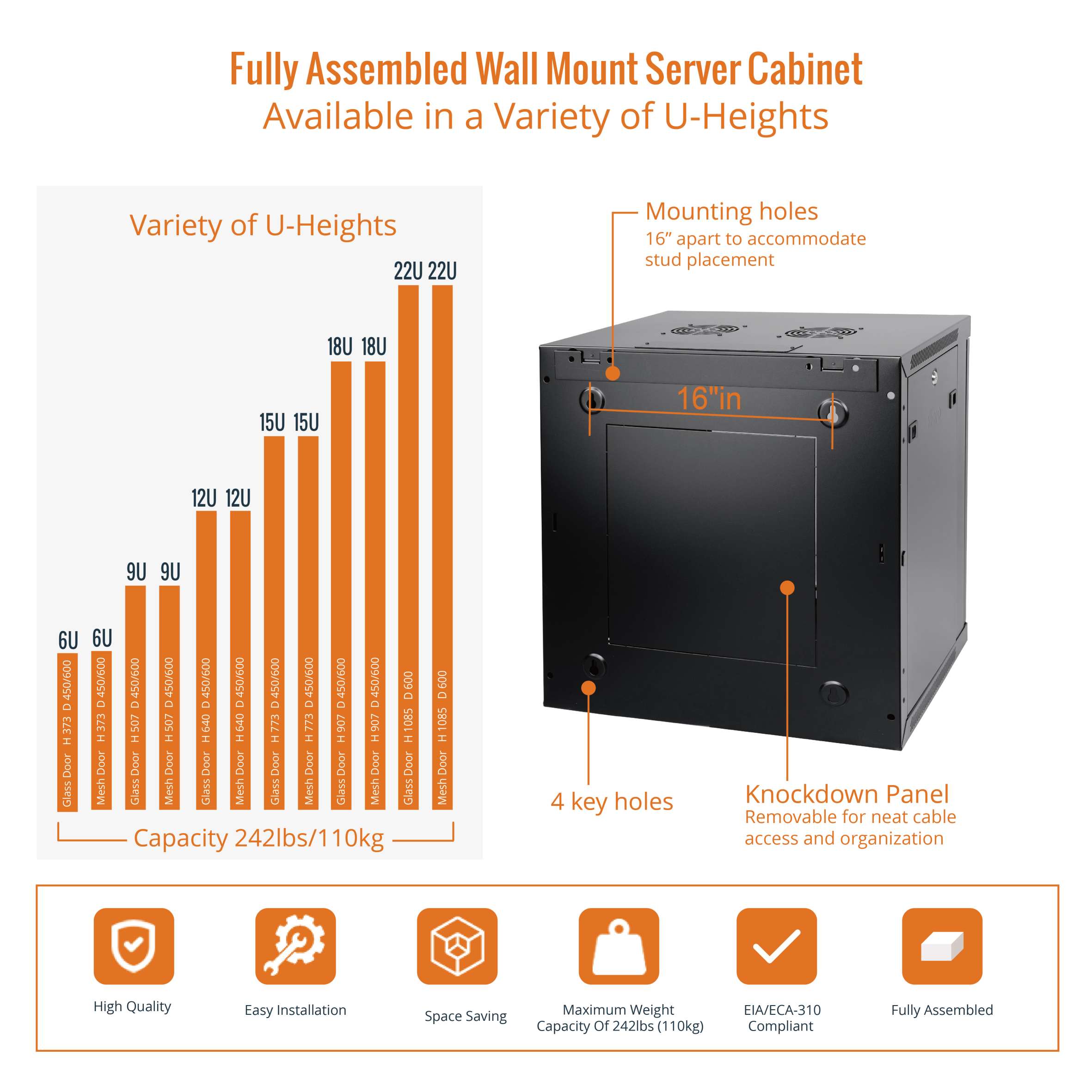 Tecmojo 12U 450mm Depth Glass Door Professional Wall Mount Cabinet( Fully Welded)