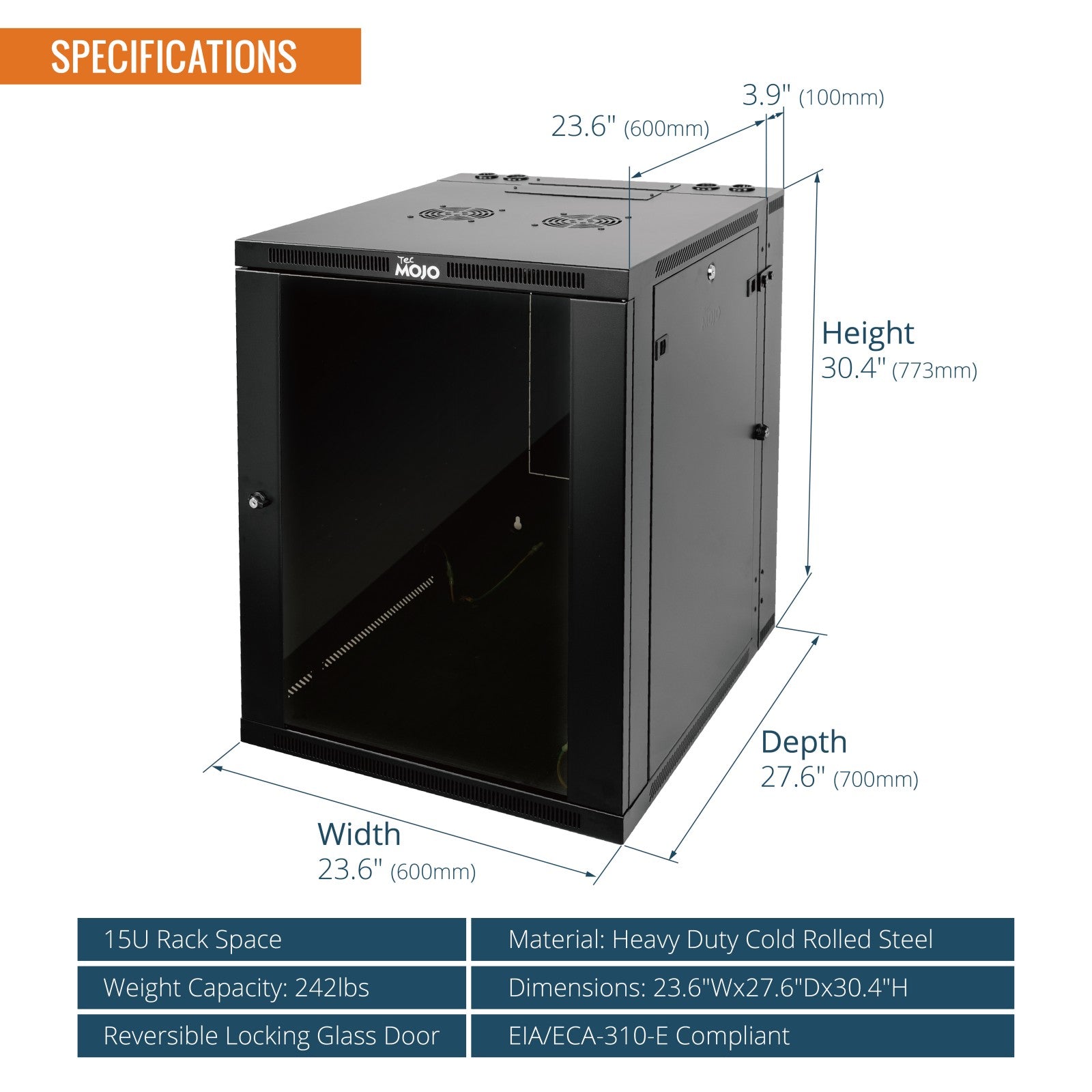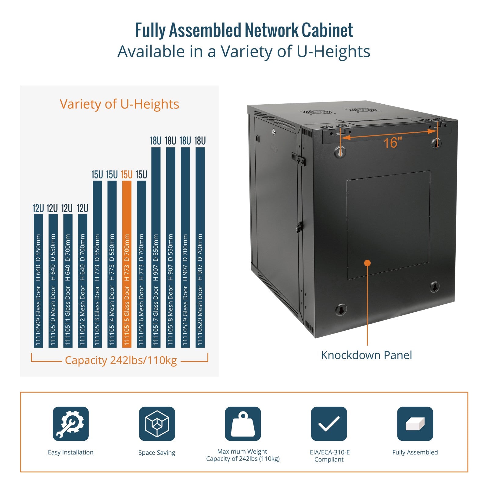 Tecmojo 15U 700mm Depth Hinged Back Glass Wall Mount Cabinet ( Swing out Series)