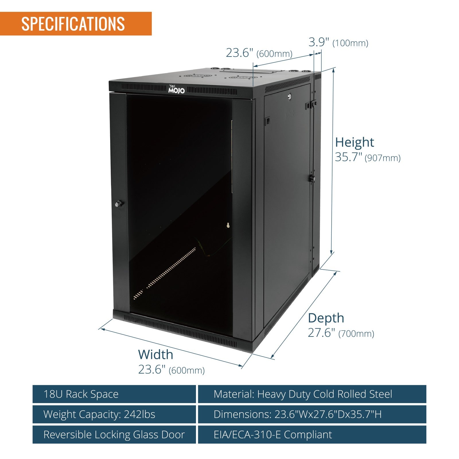 Tecmojo 18U 700mm Depth Hinged Back Glass Wall Mount Cabinet ( Swing out Series)