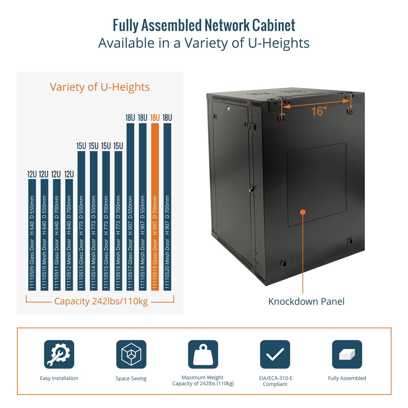 • Knockdown Panel Removable for neat cable access and organization.