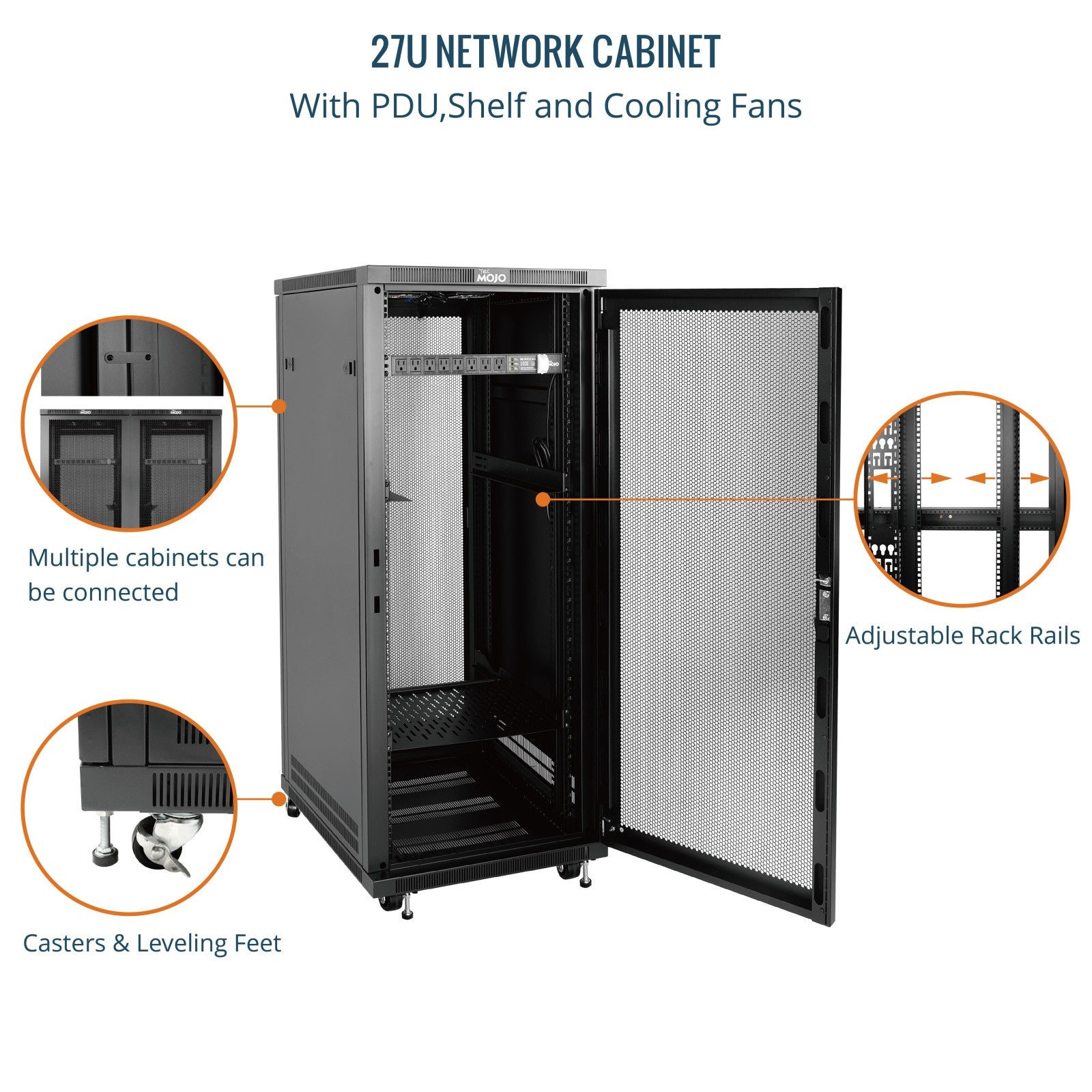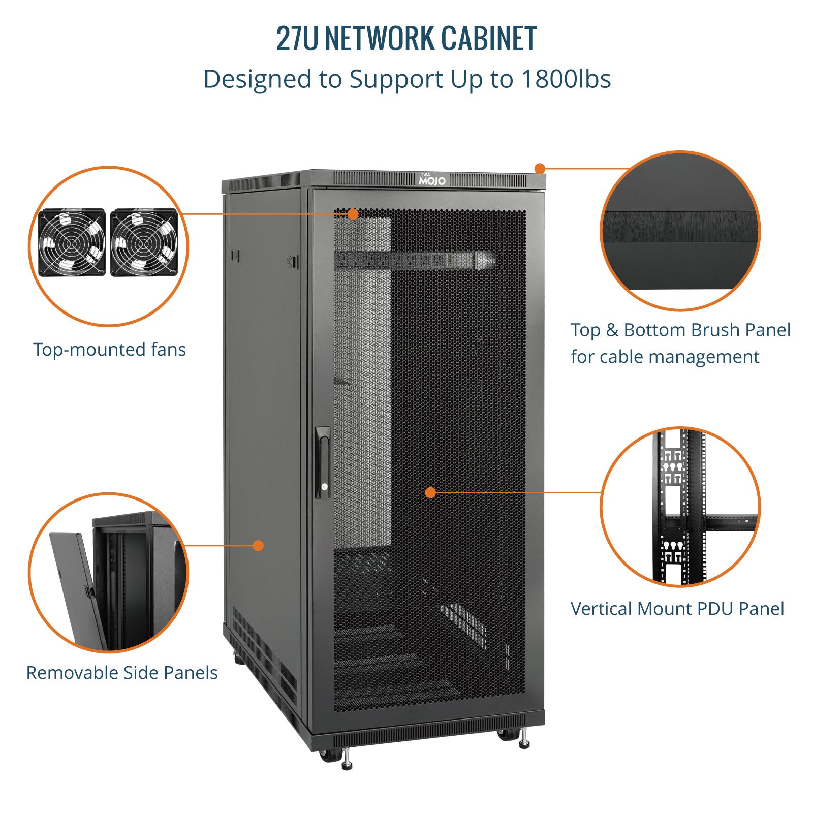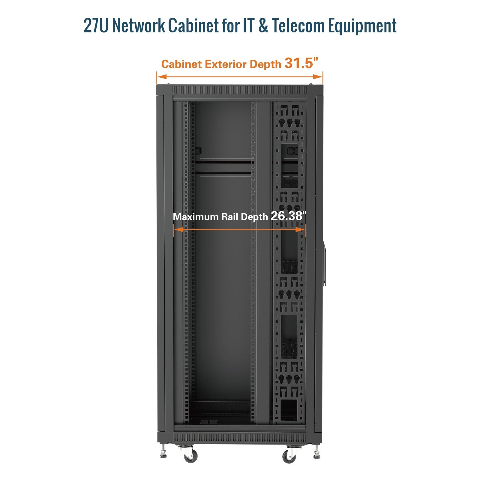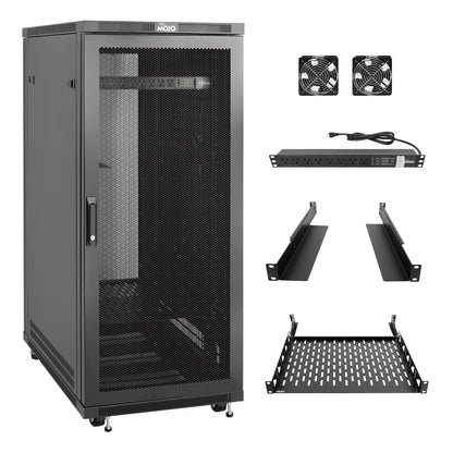 Tecmojo 27U 31.5 Inch Depth Mesh Door Server Cabinet with Casters-1800lbs Weight Capacity