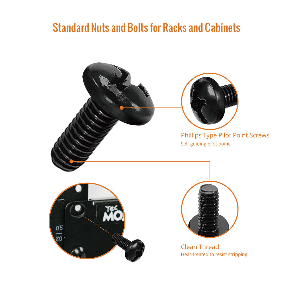 Tecmojo 12-24 Pan Head Rack Mount Screws Phillips Type Pilot Point Screws(50 Pack)