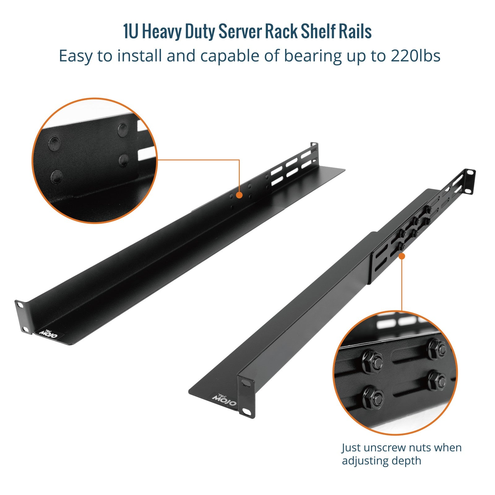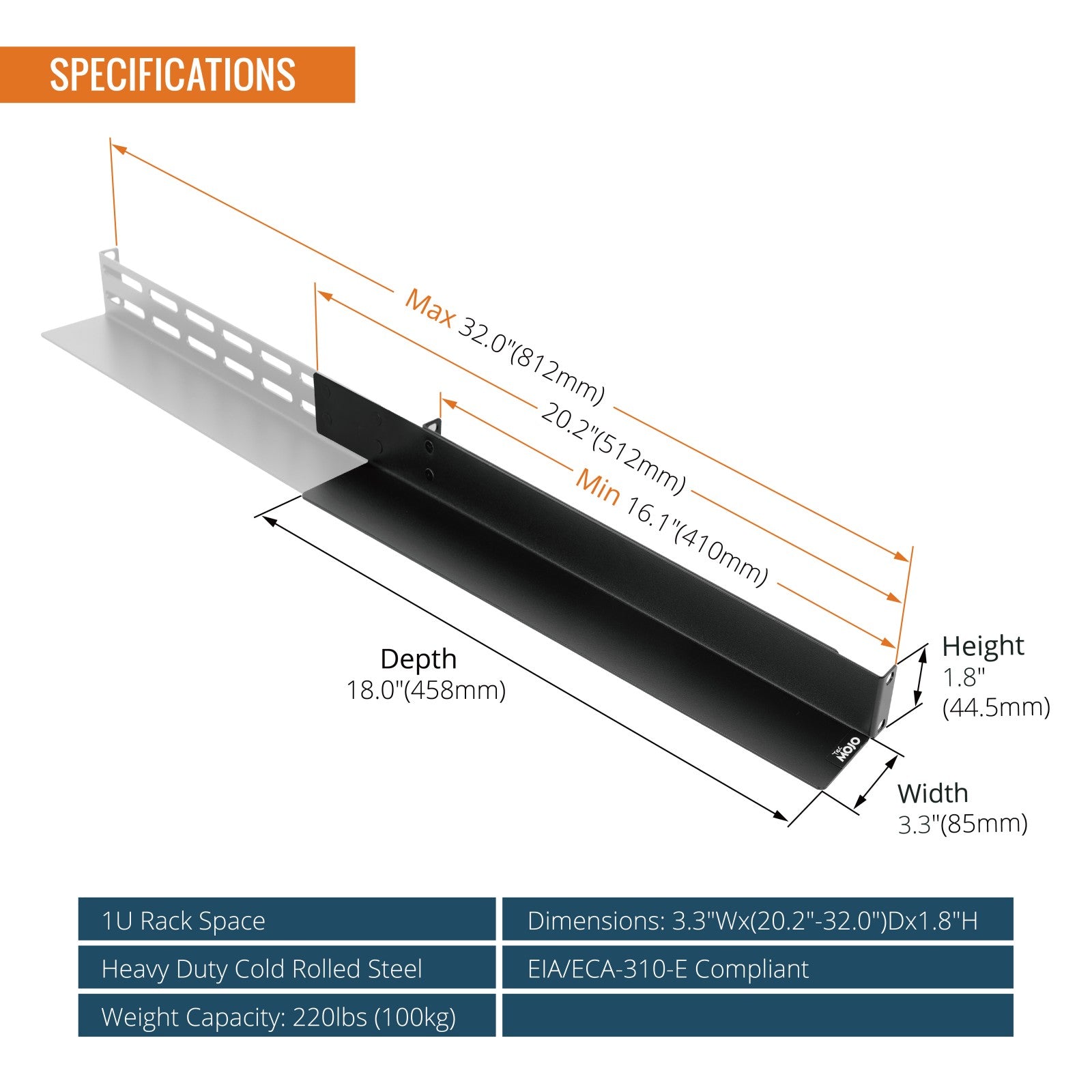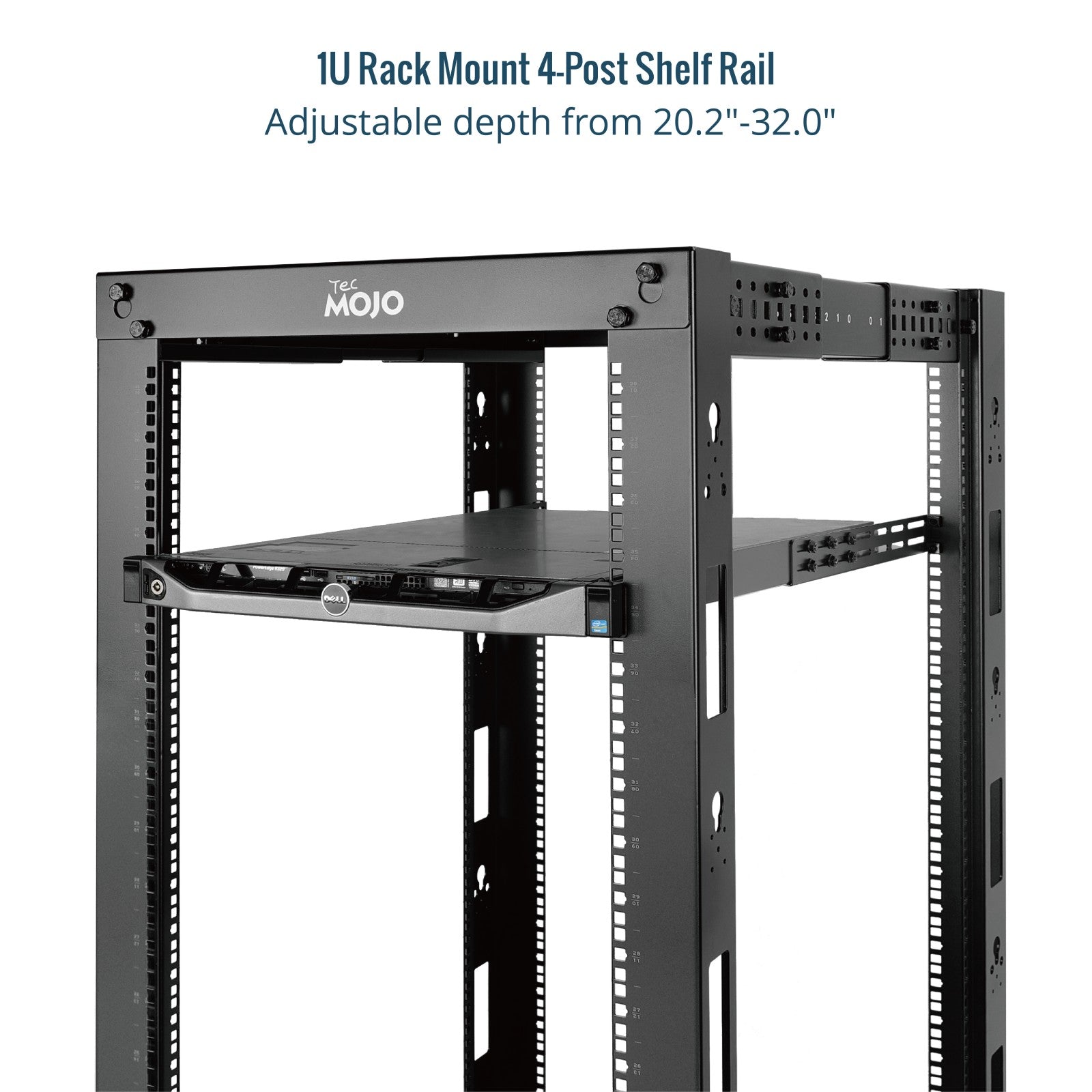 Tecmojo 1U 4-Post Server Rack Shelf Rail with 20.9"-32" Adjustable Depth-Full Support