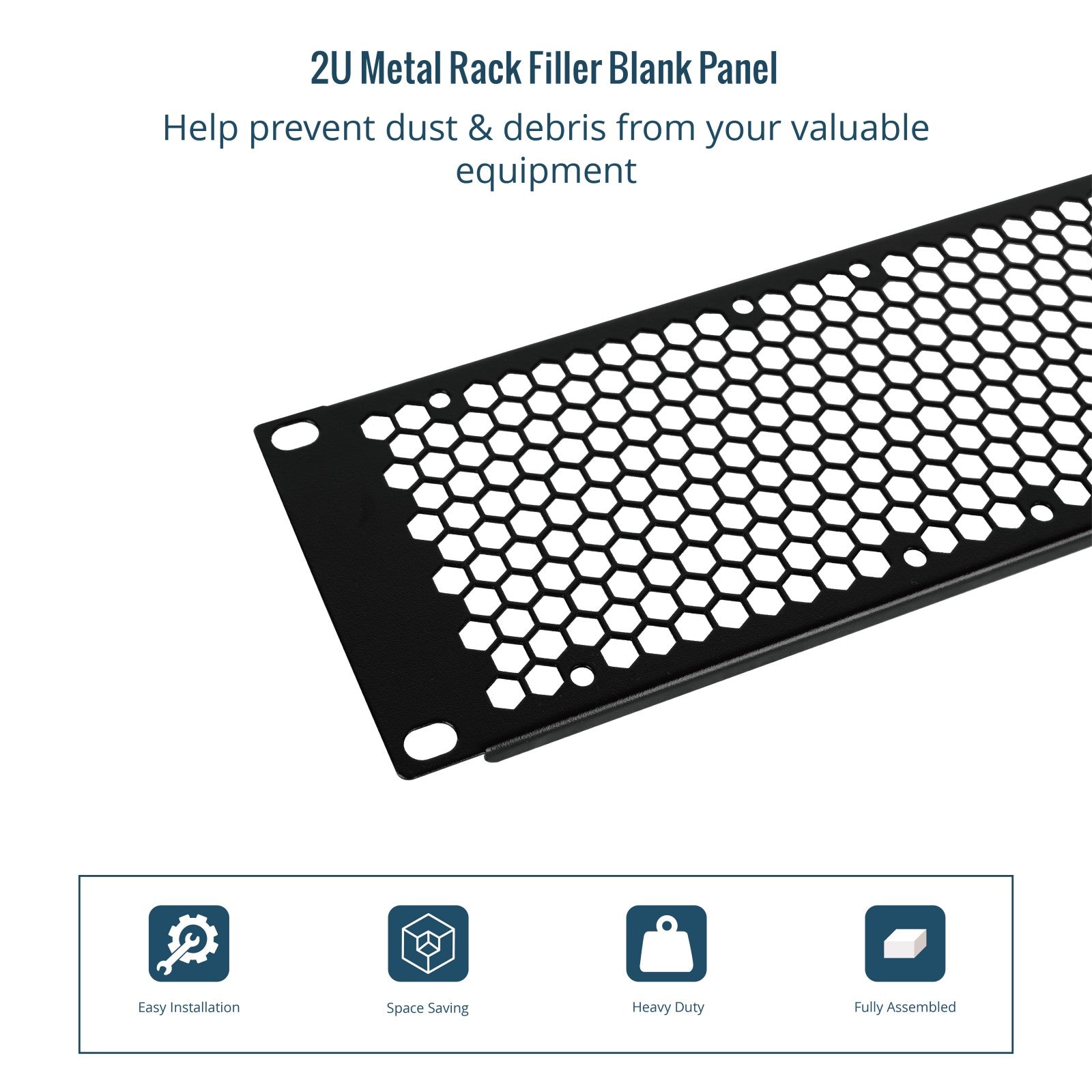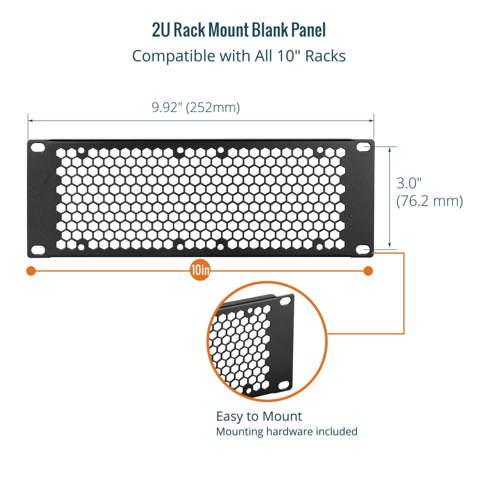 2U Rack Mount Blank Panel:Compatible with All 10" Racks Easy to Mount:Mounting hardware included 2U Metal Rack Filler Blank Panel:Help prevent dust & debris from your valuable equipment